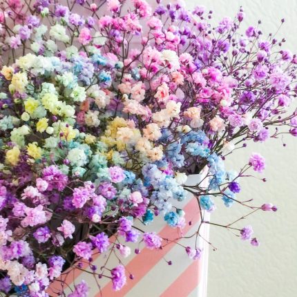 Цветочная композиция в шляпной коробке с голубой гипсофилой “Майолика”
