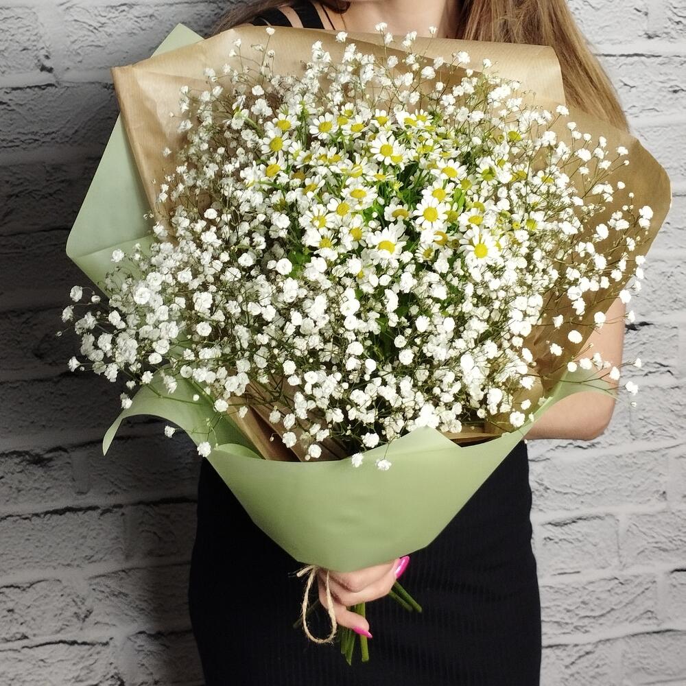 Букет “Ромашки в облаках” ромашки гипсофила