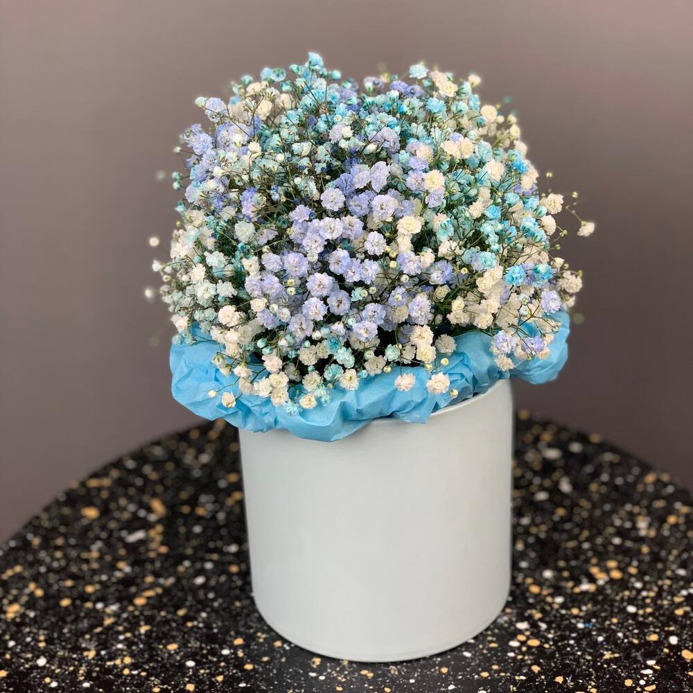 Шляпная коробка – 1 шт.Гипсофила – 5 шт.