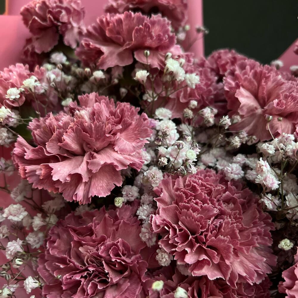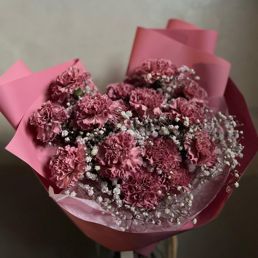 Букет из ароматных диантусов и гипсофилы