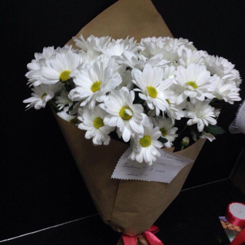 хризантемы – 25 шт. Крафт – 1 шт. Атласная лента – 1 шт.