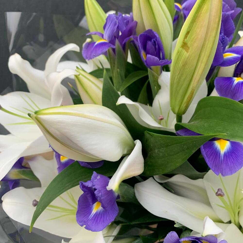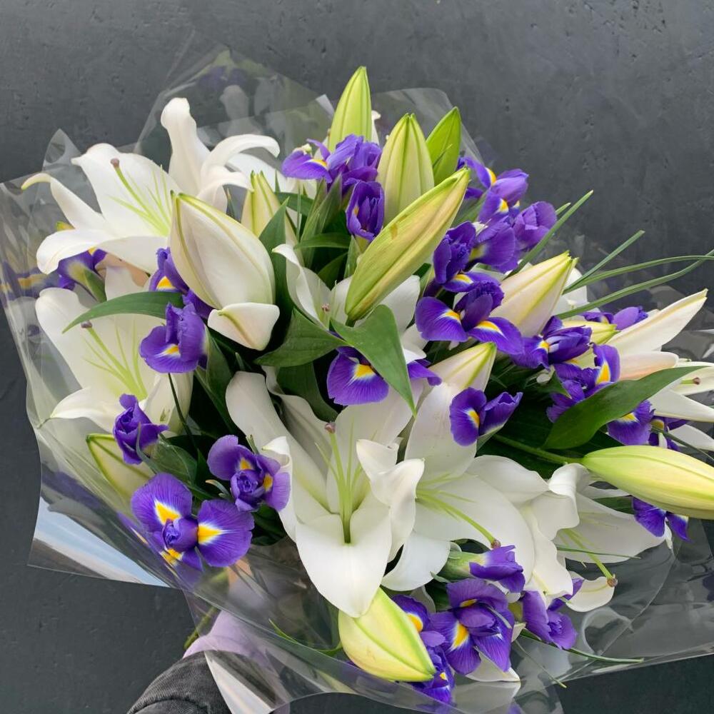 Букет из ароматных лилий и ирисов