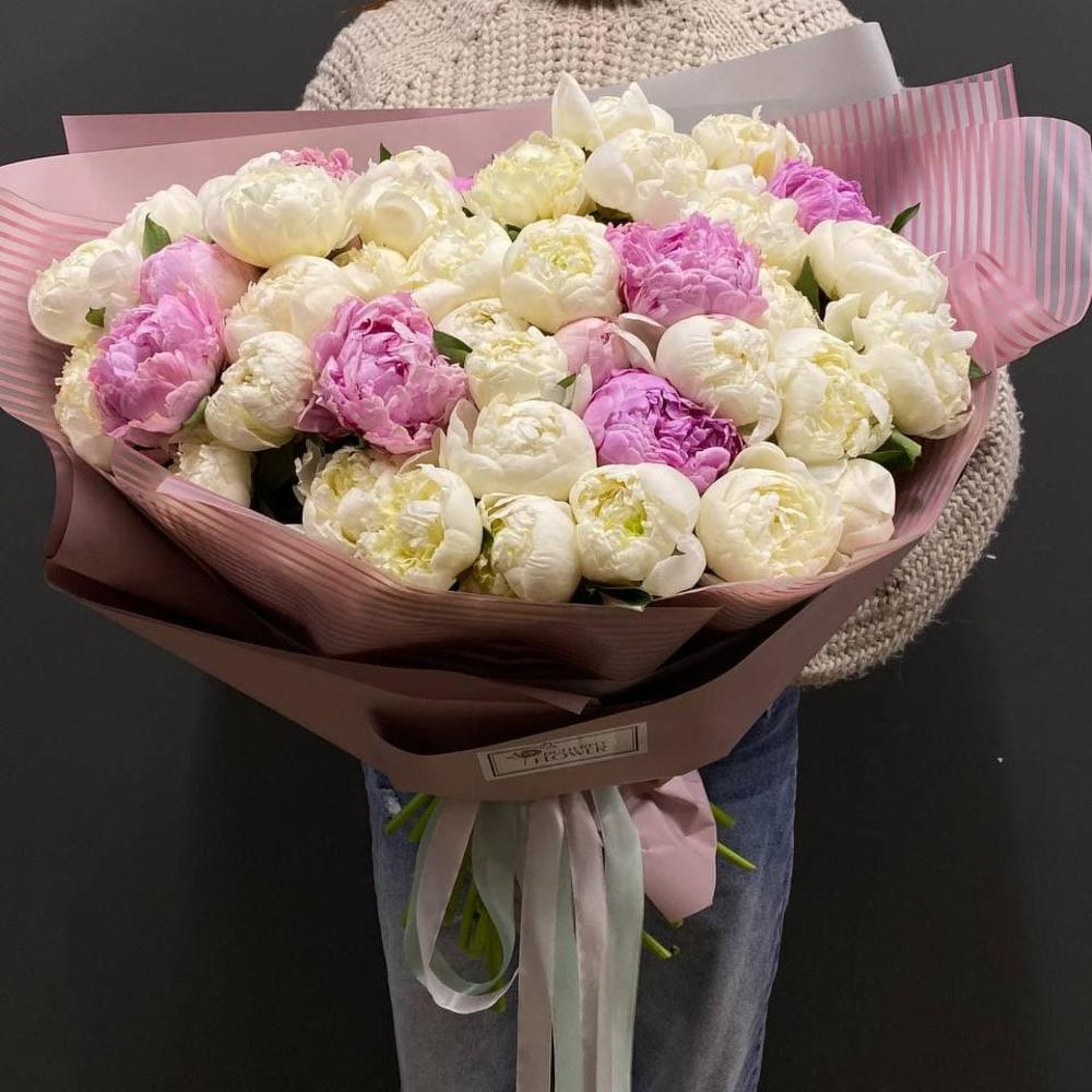 Букет из 45 пионов в стильной упаковке