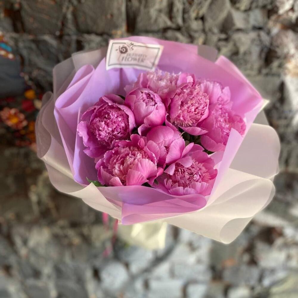 Букет из 9 пионов в стильной упаковке