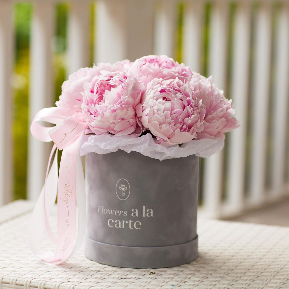 Шикарные пионы в бархатной коробке.