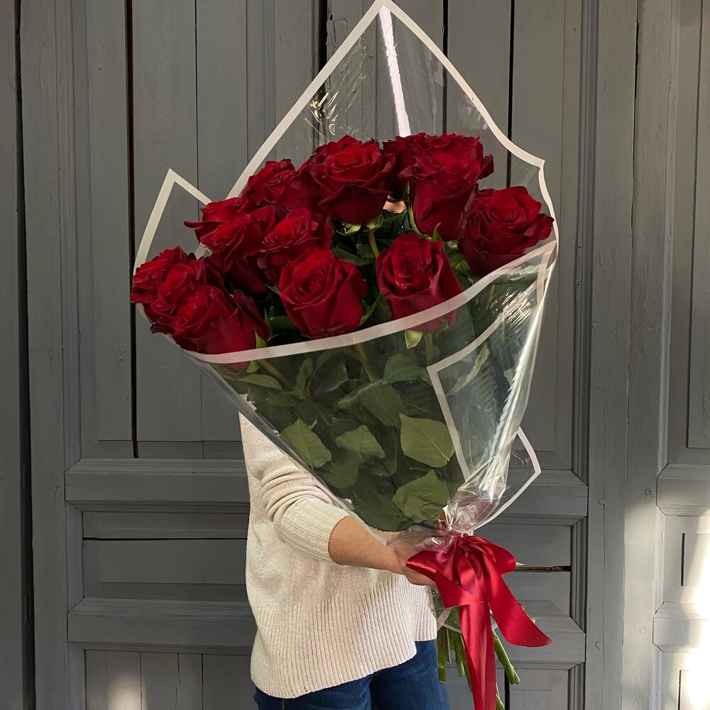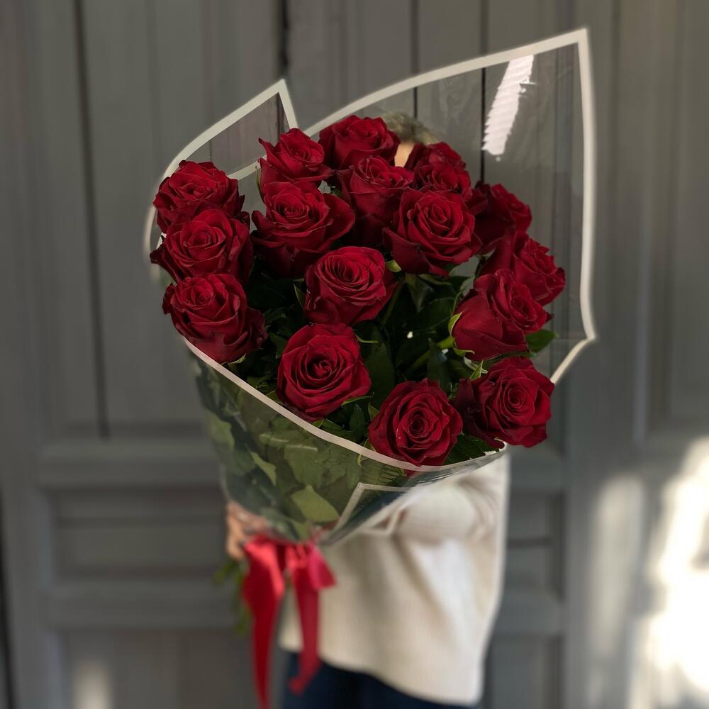 Роза Эквадор – 17 шт.Лента атласная – 1 шт.Упаковка дизайнерская – 2 шт.