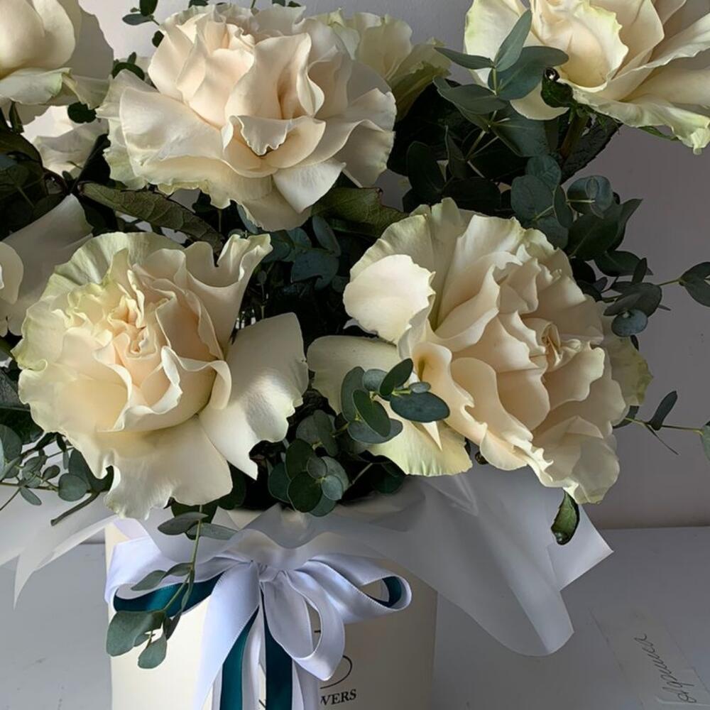 Белые розы в коробке