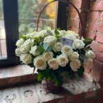 Большая корзина с белыми розами и эвкалиптом «Париж»