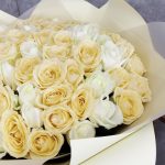 белые розы – 29 шт.Персиковая Роза – 30 шт.