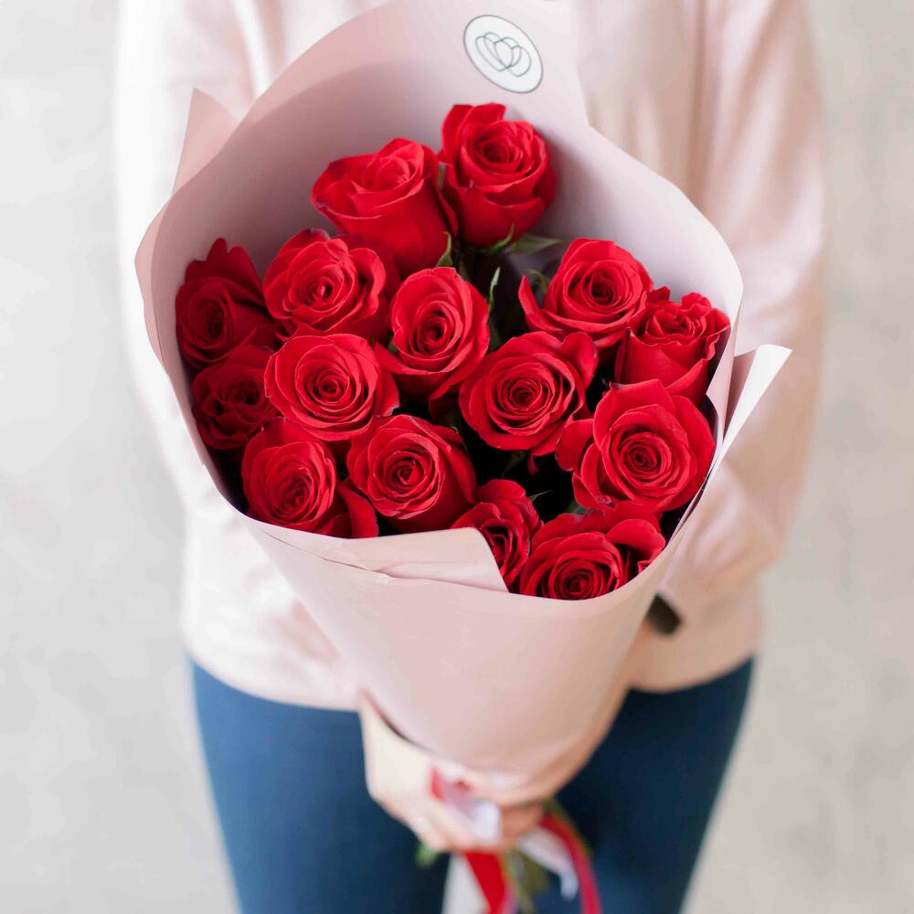 Букет из 15 красных роз 70см