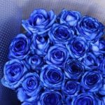 Роза синяя – 35 шт.Упаковка дизайнерская – 2 шт.Лента атласная – 2 шт.Открыточка с вашими пожеланиями – 1 шт.хорошее настроение – 100 шт.инструкция по уходу за цветами – 1 шт.коробка переноска – 1 шт.Кризал – 1 шт.