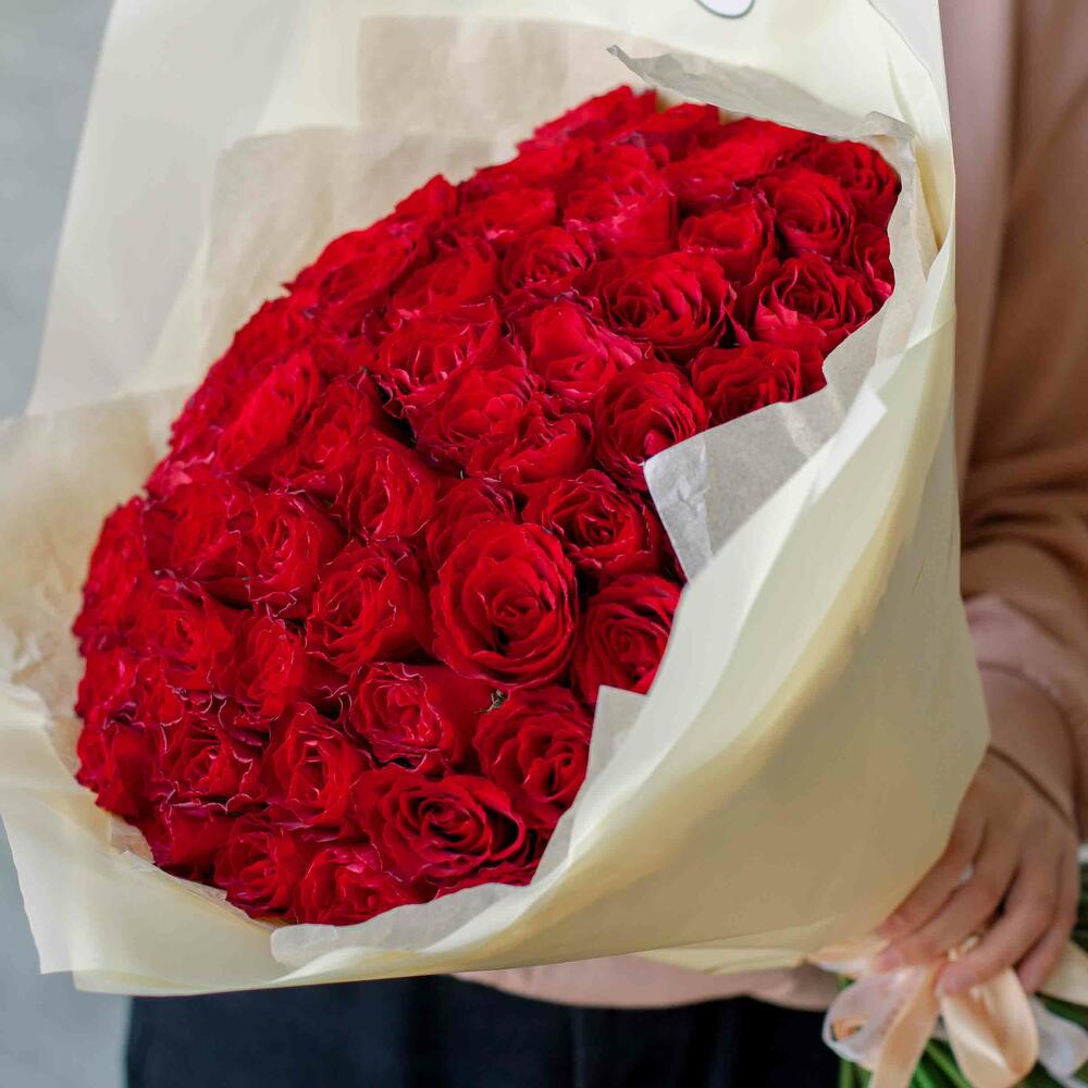Букет из 61 красной розы 40 см (Кения)