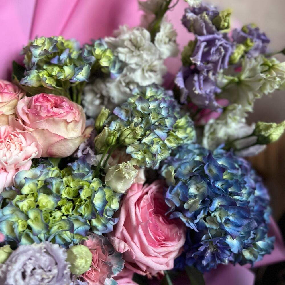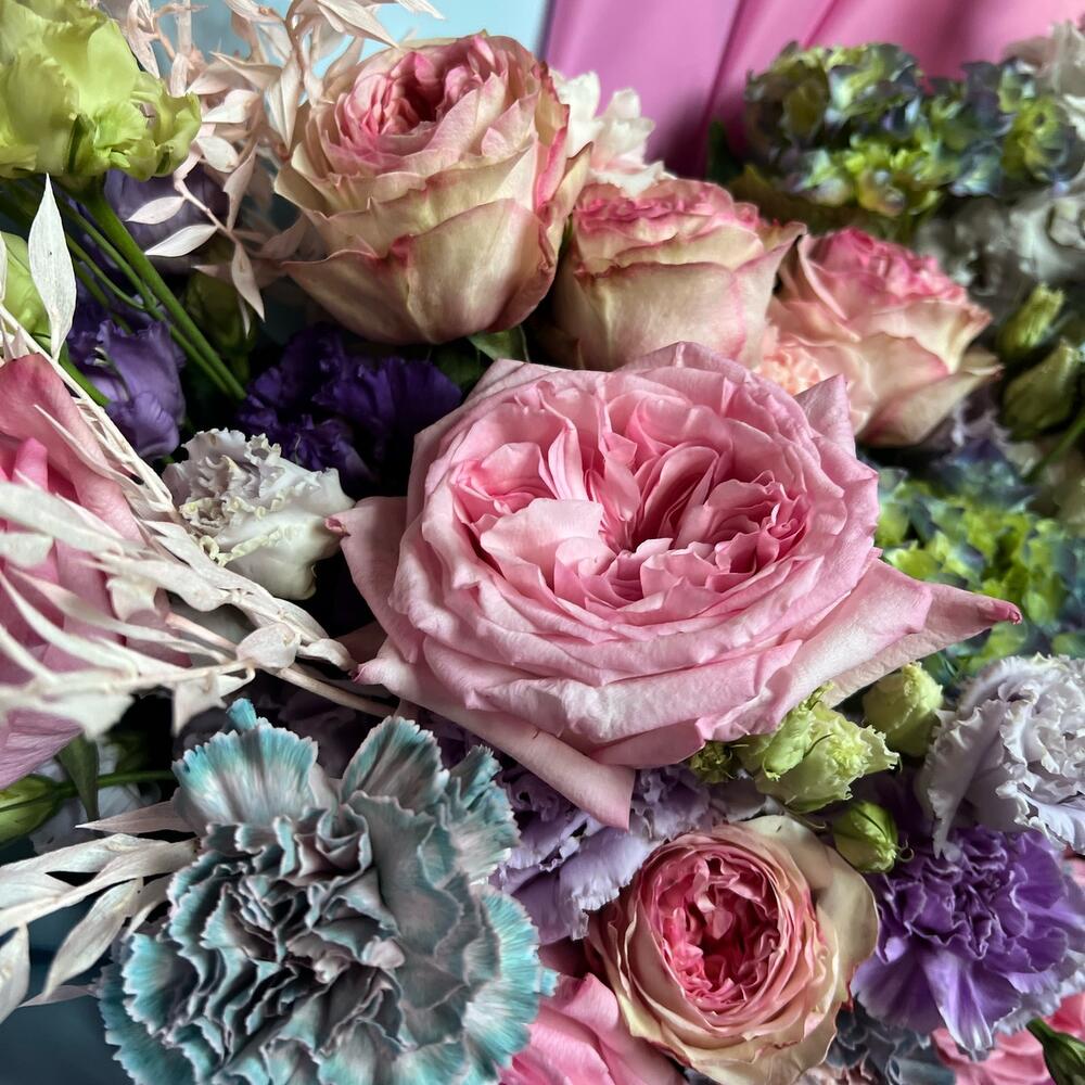 Категорий: Гвоздики, Гортензии, Лизиантусы, Пионовидные розы, Розы, Сухоцвет
