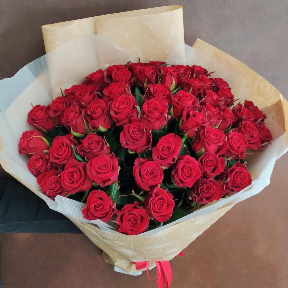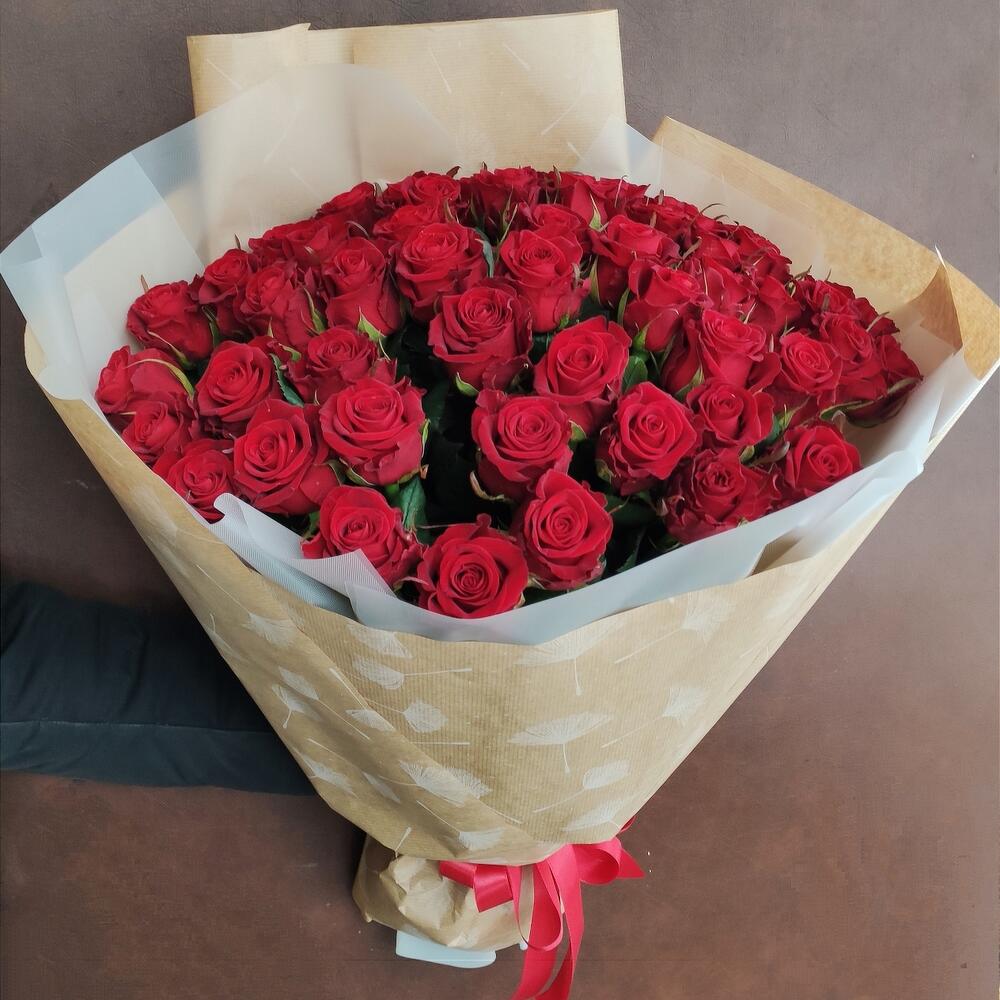 роза украинская красная – 51 шт. оформление бумага и калька – 1 шт.