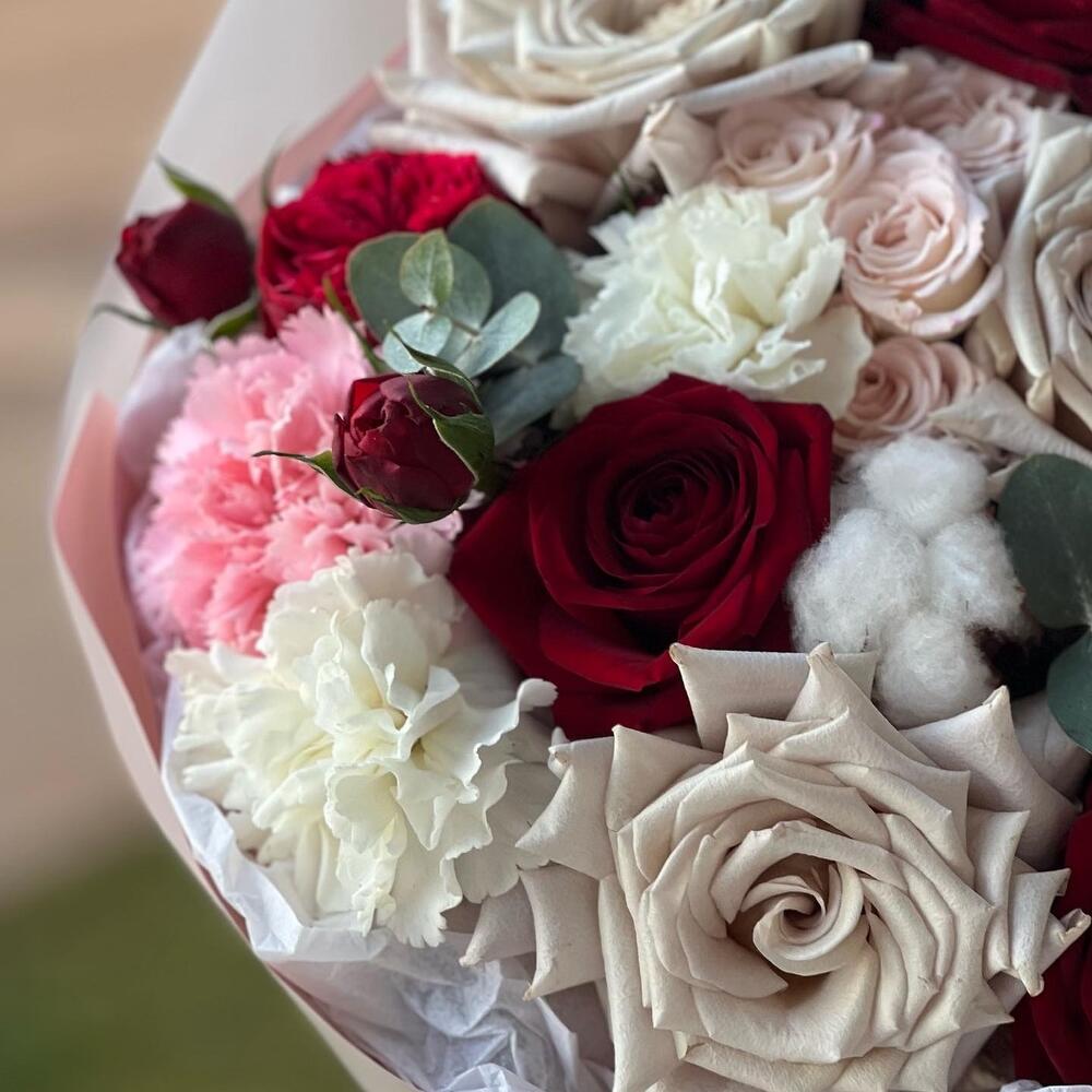 Категорий: Гвоздики, Кустовые розы, Пионовидные розы, Розы, Сухоцвет