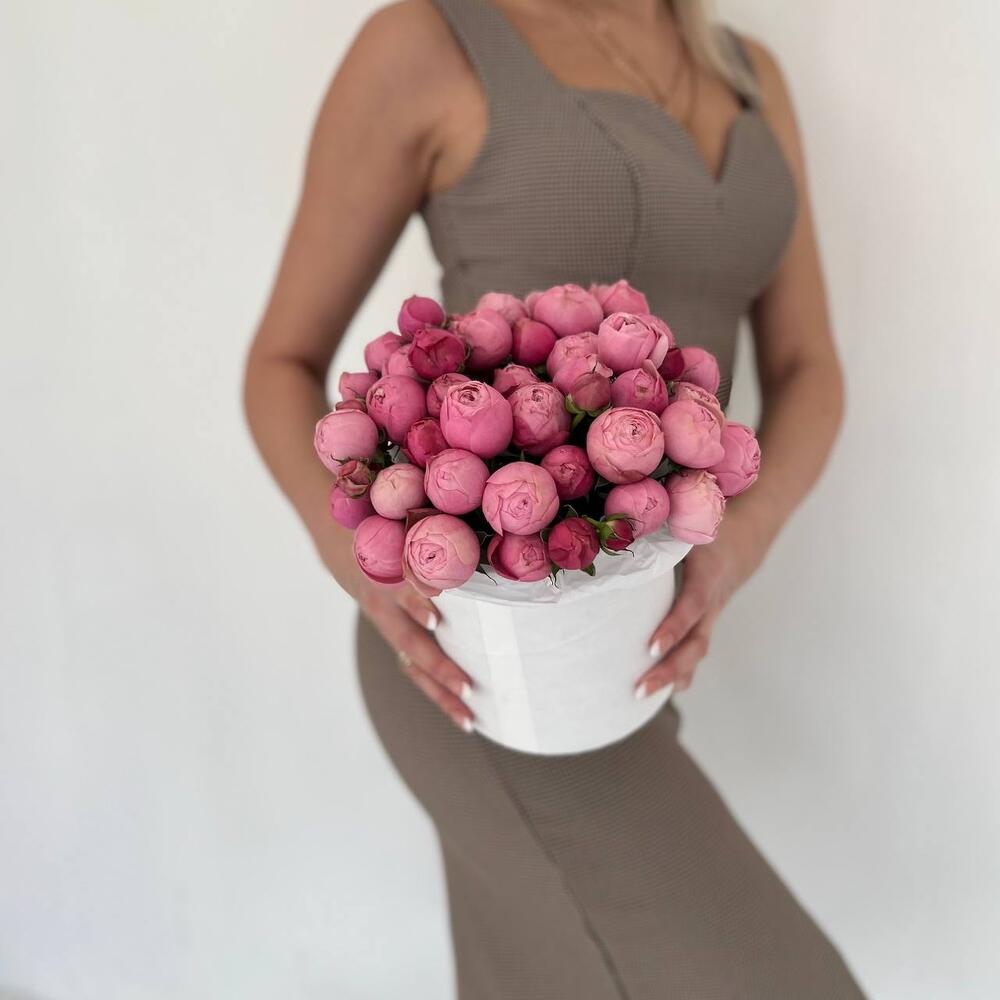 Пионовидные розы в шляпной коробке