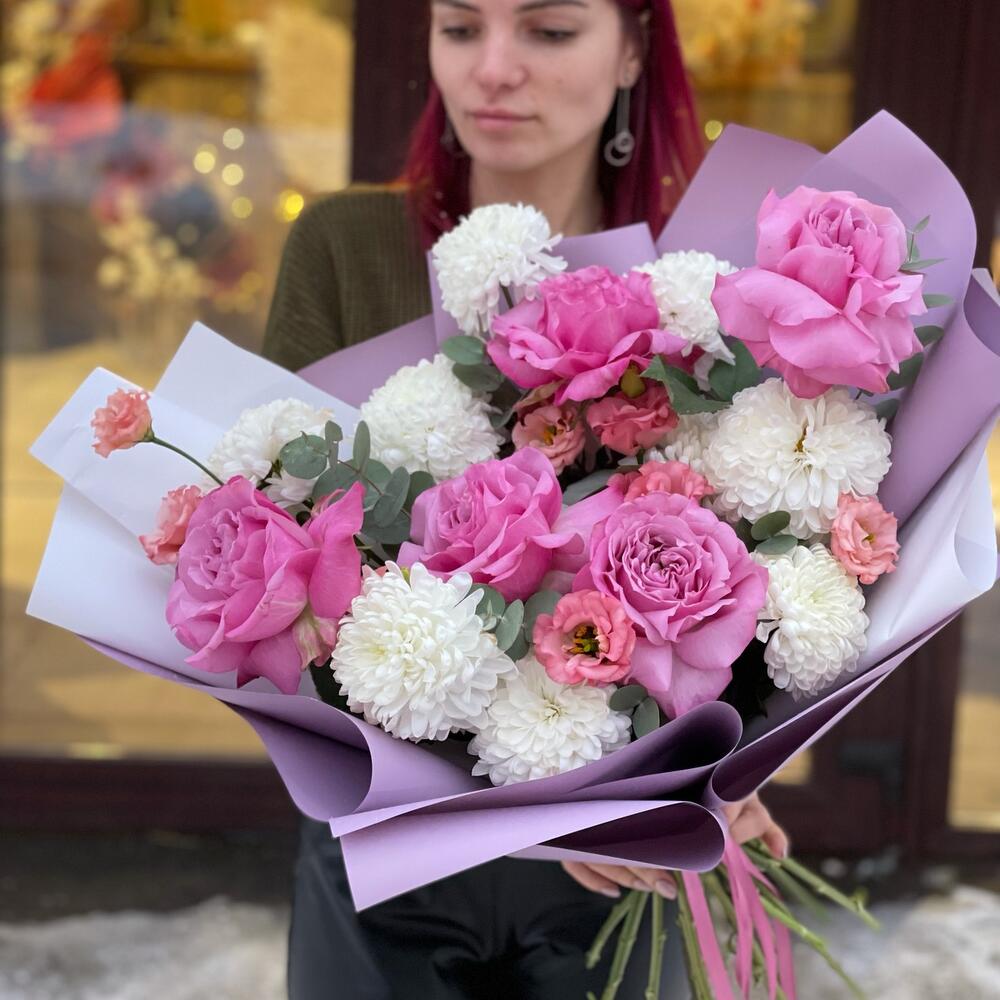 Альстромерии, Кустовые розы, Лизиантусы, Пионовидные розы, Розы, Ромашки
