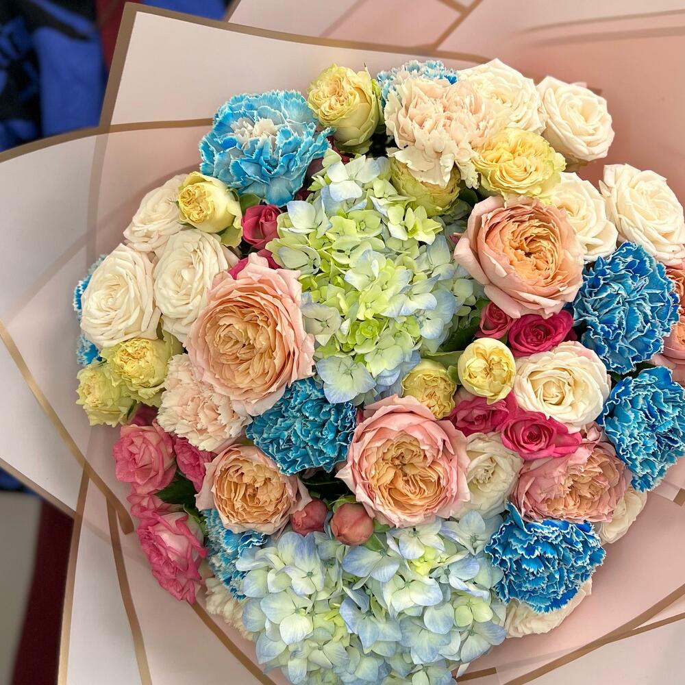 Категорий: Гвоздики, Гортензии, Кустовые розы, Пионовидные розы, Розы