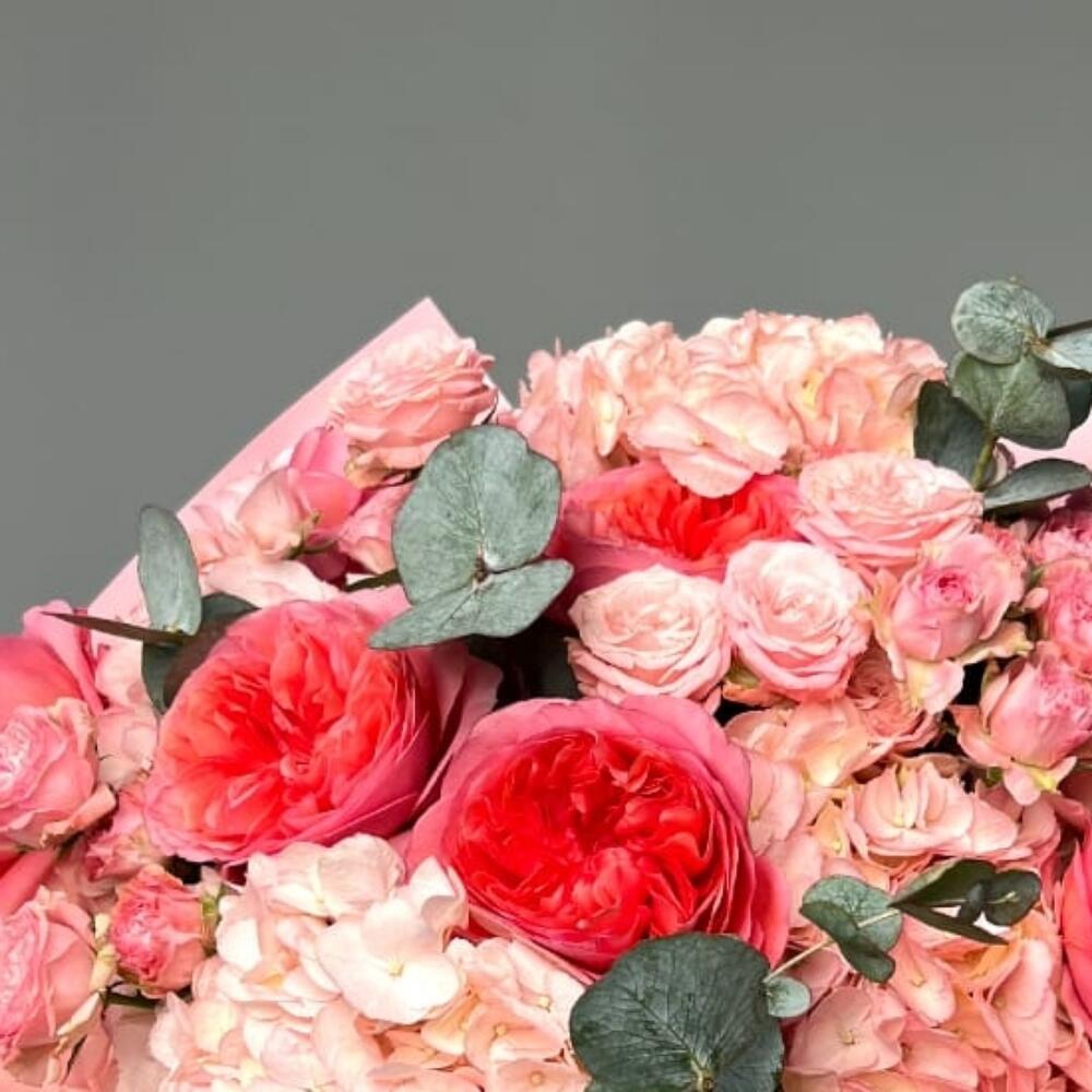 “Эвкалиптическая роскошь” гортензия и пионовидная кустовая роза