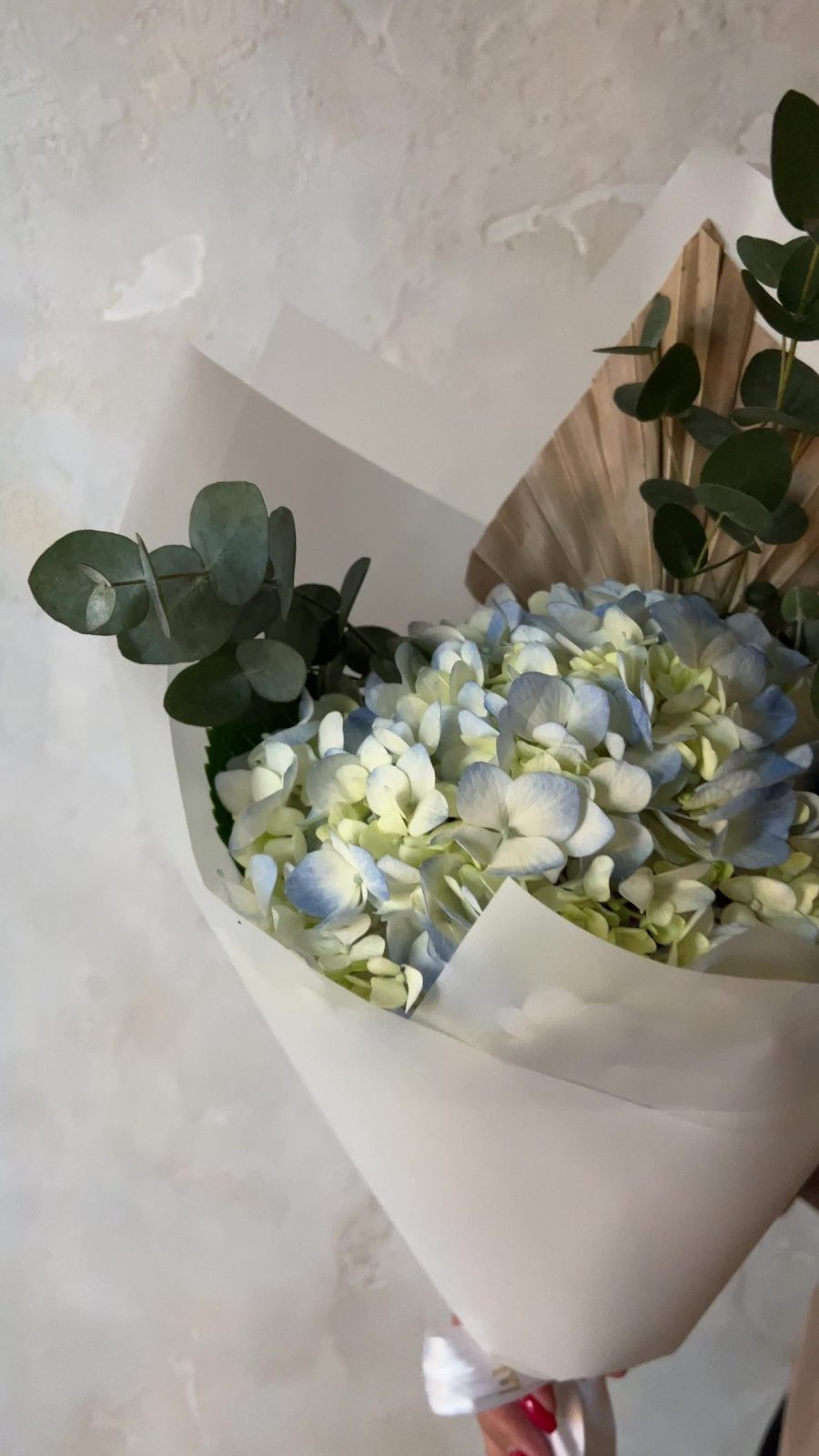 Гортензия – 1 шт.Эвкалипт – 1 шт.Сухоцвет – 1 шт.Упаковка дизайнерская – 1 шт.