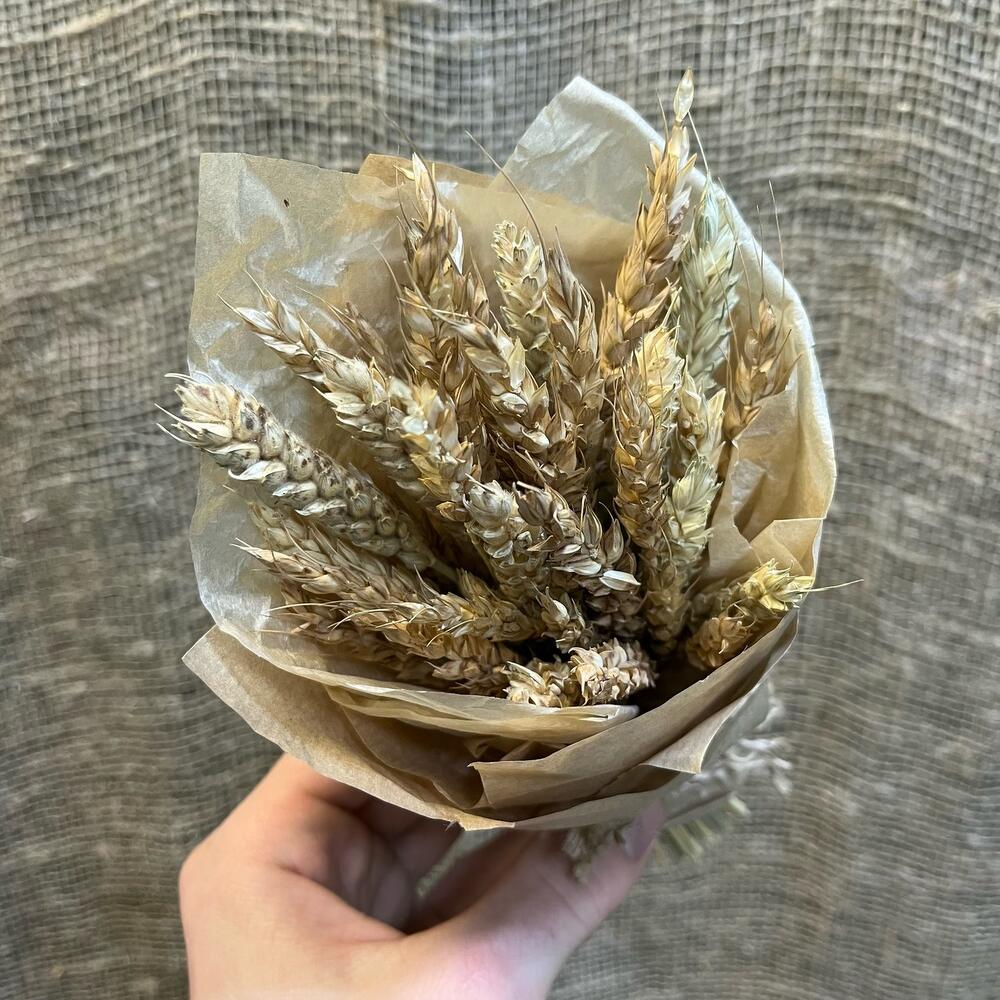 Милый лёгкий нежный букетик из колосьев пшеницы в натуральной эко упаковке. Маленький, но в нём много заложено любви и чувств!