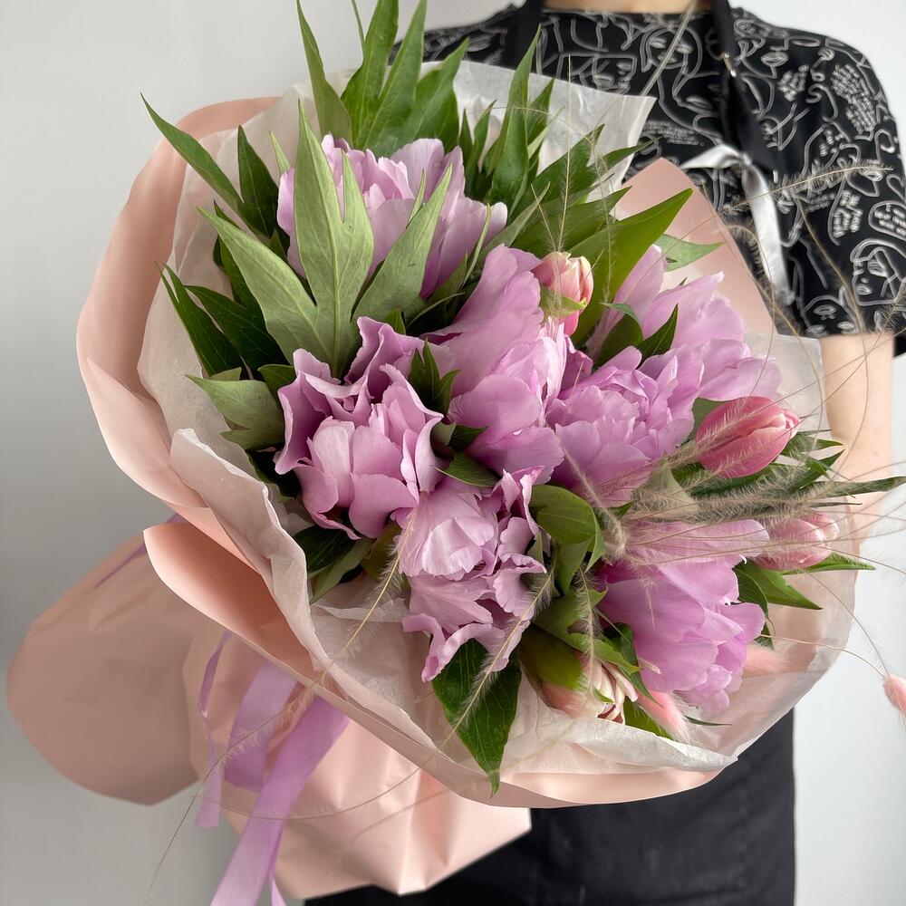 Полевой букет с Пионами и ромашкой и роза